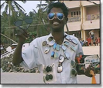 lähestyi huutaen tarjouksiaan. Sitten seurasi aurinkovarjoja, vaatteita,